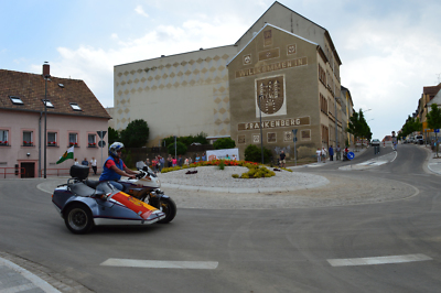 Zahlreiche Bürgerinnen und Bürger waren zur Einweihung an die Schlossplatzinsel gekommen. Ludwig Schmidt aus Frankenberg/Sa. drehte als erster mit seinem Yamaha-Motorrad Runden um die neue Schlossplatzinsel.
