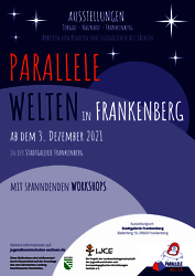 Ab Freitag, den 3.12.2021 haben wir die Wanderausstellung „Parallele Welten“ - ein Projekt der Landesarbeitsgemeinschaft der Jugendkunstschulen und kunstpädagogischen Einrichtungen (LJKE) Sachsen e.V. zu Gast.