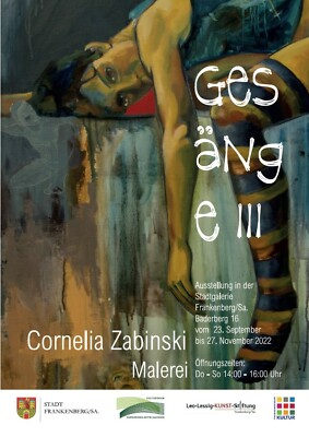 „Spannend ist hier vor allem die weibliche Sicht auf die Frau.“, beschreibt Cornelia Zabinski ihre Ausstellung. „So steht nicht der Körper im Vordergrund, nicht das Voyeuristische, sondern die Seele. Fragende Blicke aus dem Bild heraus auf den Betrachter, oder ist es die Aufforderung an den Schauenden, sich in das Bild hineinzubegeben? Romantik und Abstraktion versuchen ein Miteinander, der räumliche Bezug zur Heimat – Lichtenwalde mit seinem Schloß, Braunsdorf mit der Weberei – erden die Bilder und beflügeln gleichzeitig den Austausch zwischen dem Kunstliebhaber und der Malerei.“, so Zabinski.