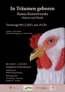 Die Vernissage zur Ausstellung findet am Freitag, den 3.2.23, 19.00 Uhr in der Stadtgalerie Frankenberg/Sa. (Baderberg 16, 09669 Frankenberg/Sa.) statt.