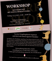 Am Freitag, den 03.12.2021 war ursprünglich die letzte Vernissage in diesem Jahr geplant. Diese kann unter den jetzigen Umständen nicht stattfinden.