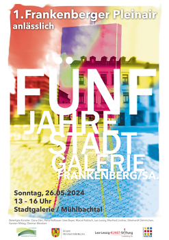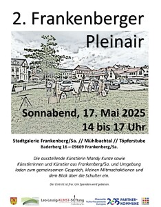 Am Sonnabend, den 17. Mai 2025, im Zeitraum von 14 bis 17 Uhr. findet das zweite Frankenberger Pleinair (Freilichtmalerei) im nahe gelegenen Mühlbachtal sowie in den Räumen der Stadtgalerie Frankenberg/Sa. und der benachbarten Töpferstube statt.