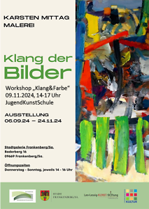 Die Teilnehmerzahl ist begrenzt, eine Anmeldung bei Herrn Fischer, Leiter der JugendKunstSchule Frankenberg/Sa., unter b.fischer@frankenberg-sachsen.de wird erbeten.