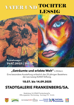 Anlässlich des Gründungstages der Leo-Lessig-KUNST-Stiftung am 01.07.2005 zeigt die Stadtgalerie Frankenberg/Sa. im Zeitraum vom 18.07.2025 bis 14.09.2025 eine besondere Ausstellung des Stifters Leo Lessig mit seiner Tochter Sylvia Lessig. Seit 2006 obliegt die Stiftung in der Trägerschaft der Stadt Frankenberg/Sa.
