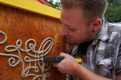 Die Idee der Alltagskunst wurde durch Herrn Heiko Ohrtmann, Dante ArtDesign, ins Gespräch gebracht. Wie der Frankenberger erklärt, zeichnet und bastelt er schon seit klein auf. Die ersten großen Projekte baute er zu seinen jährlichen Motto-Partys, wo er an einem Objekt bis zu drei Monaten arbeitete. Seit drei Sessionen ist Heiko Ohrtmann Mitglied im Frankenberger Carnevalsverein und hilft mit bei Planung und Umsetzung des Programms und dem Bühnenbild. Die Idee, mehr aus dem Thema Upcycling zu machen, war vor etwa 6 Jahren geboren, als er seine erste Skulptur „MonsterEnergie Phönix“ aus MonsterEnergie Dosen gebaut hatte. Es folgten weitere Upcycling- aber auch kreative Projekte wie Logos designen, Holzschilder kreiieren, alte Möbel umbauen und vieles mehr. So entstand das Dante Art Design. Dies alles fertigt er ausschließlich in seiner Freizeit an. Beruflich arbeitet Ohrtmann bei der Firma InnoTex in Frankenberg. Hier absolvierte er seine Lehre als Maschinen- und Anlagenführer und spezialisierte sich als Textildrucker.