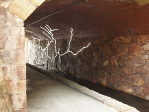 Die vielen kleinen Bäche haben in Summe etwa 55 km Wegstrecke hinter sich gelassen, bevor sie als Mühlbach hier im Tunnel ankommen. Nur drei von ihnen haben einen Namen: der Mühlbach, der Herrenbach und der Goldbach. Dieses Wasser trieb in Frankenberg einmal zwei Mühlen an und versorgte im 17. Jahrhundert vor der Stadt Frankenberg fast 10 Hektar Teichfläche mit Wasser.