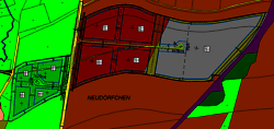 - von insgesamt 17,2 ha sind z. Z. 6,7 ha verkauft; 7,1 ha optioniert und 3,4 ha -Freiflächen