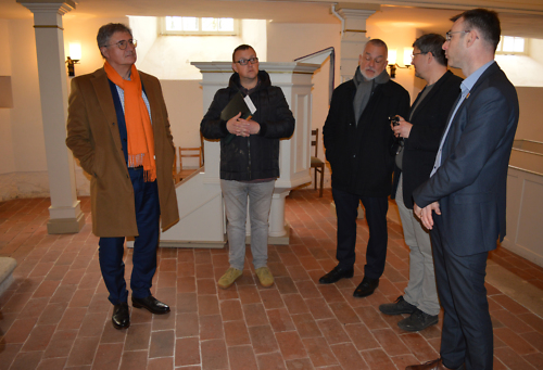 Prof. Thomas Popp zeigte sich von der textilen Skulptur aber auch von der Dorfkirche beeindruckt. Ostersonntag, den 31.03.2024, 10.00 Uhr findet ein Festgottesdienst mit der Enthüllung des Altars statt.