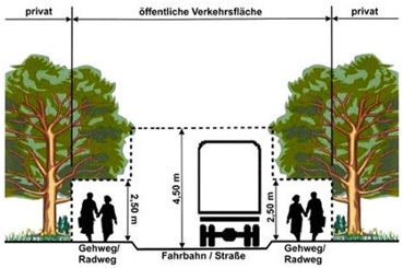 Um die Verkehrssicherheit zu gewährleisten, müssen Personen und Fahrzeuge die öffentlichen Straßenflächen ungehindert benutzen können. Öffentliche Straßenfläche in diesem Sinne ist nicht nur die Fahrbahn selbst, sondern auch die Geh- und Radwege. Durch hereinragende Anpflanzungen kann eine Gefährdung der Verkehrsteilnehmer eintreten, wenn z.B. ein Fußgänger aus diesem Grund auf die Fahrbahn ausweicht. Im Interesse der Verkehrssicherheit sind die Bepflanzungen auf das notwendige Maß zurückzuschneiden.