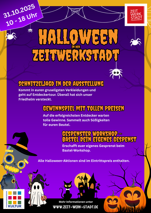 Am Freitag, den 31. Oktober 2025, wird es schaurig-schön im Museum ZeitWerkStadt in Frankenberg/Sa.: Von 10 bis 18 Uhr verwandelt sich das Museum in ein echtes Halloween-Paradies – perfekt für große und kleine Gruselfans!