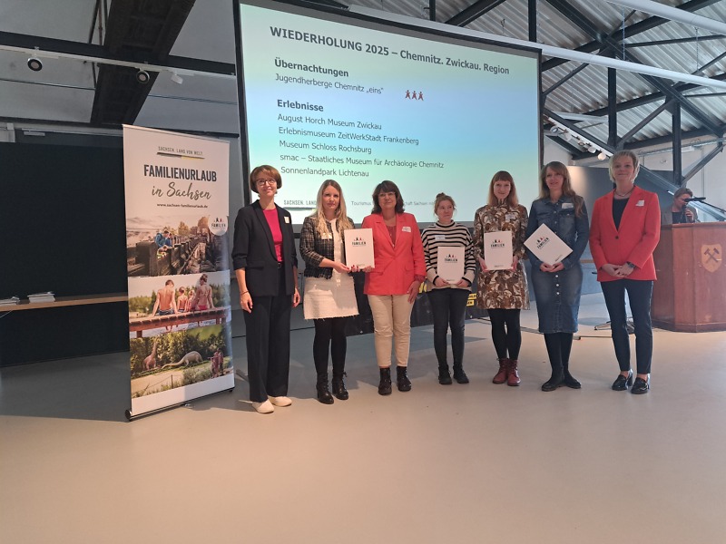 Am 12. November fand in der KohleWelt in Oelsnitz im Erzgebirge die Auszeichnung des Qualitätssiegels „Familienurlaub in Sachsen“ statt. Von nahezu 160 touristischen Einrichtungen wurde auch das Erlebnismuseum ZeitWerkStadt als familienfreundlich zertifiziert und darf sich somit erneut über das Qualitätssiegel „Familienurlaub in Sachsen“ freuen.