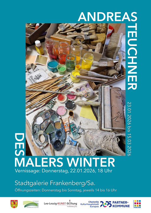 Es erwartet Sie ein extravaganter Blick hinter das Handwerk des Malers unter dem Titel „Andreas Teuchner: „Des Malers Winter“ im Zeitraum vom 23. Januar bis 15. März 2026 in der Stadtgalerie Frankenberg, der gleichzeitig einen Rückblick auf ein Traditionsunternehmen in Frankenberg gewährt.