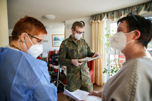 Durch die Covid-19-Pandemie ist die Amtshilfe durch die Bundeswehr noch einmal besonders in den Fokus der Öffentlichkeit gerückt. Die Soldaten der Panzergrenadierbrigade 37 unterstützten - und unterstützen noch immer - in zahlreichen Amtshilfemaßnahmen, bei denen zeitweise über 1.200 Angehörige der Brigade eingesetzt waren. Die Unterstützungsleistungen verteilen sich dabei über den gesamten Stationierungsraum in Sachsen und Thüringen. Auch im Landkreis Mittelsachsen waren und sind unsere Soldaten im Einsatz gegen das Virus. Die Aufgaben der in Amtshilfemaßnahmen befindlichen Soldaten waren dabei häufig völlig andere, als sie im normalen Dienstalltag zu bewältigen haben. So wurden aus Maschinengewehrschützen Labormitarbeiter und Instandsetzungspersonal fand sich bei unterstützenden Tätigkeiten in Krankenhäusern und Pflegeeinrichtungen wieder. Eine Kontaktnachverfolgung, ohne die 37er-Soldaten, war in den meisten Gesundheitsämtern undenkbar. Besonders in den Altenheimen kam die Hilfe gut an. Dort, wo die Bewohner aufgrund der Pandemie keine Angehörigen mehr empfangen konnten, war die Freude umso größer, wenn sich jemand Zeit für ein Gespräch oder auch ein Kartenspiel nahm.