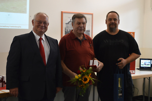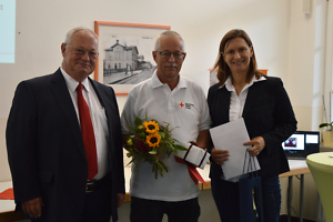 Herr Thomas Bernhardt begann als junger Sanitäter im Deutschen Roten Kreuz Frankenberg/Sa. (DRK) und ist seit 1968 Mitglied. Seit mehr als 40 Jahren ist er Ausbilder in Erster Hilfe und bildete zahlreiche Bürgerinnen und Bürger aus- und weiter. „Als Ausbilder wird er über die Stadtgrenzen hinaus sehr geschätzt, als Mitglied steht Thomas Bernhardt bis heute immer bereit, um die Aufgaben des DRK umzusetzen. Betreuung von Betroffenen bei Schadensereignissen wie Wohnhausbränden und Hochwasser, Sanitätsdienste, Aus- und Weiterbildung der Bevölkerung oder auch nur die kleinen Aufgaben, die im Verein anfallen, Thomas packt an und hilft, wo er nur kann“, sagte Laudatorin Yvonne Lösche.