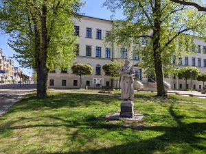 Beim Bau der Bürgerschule in Frankenberg (Einweihung 1870) wurde zwischen den beiden Haupteingängen eine Nische freigelassen, in der später einmal eine Statuette Aufstellung finden sollte.