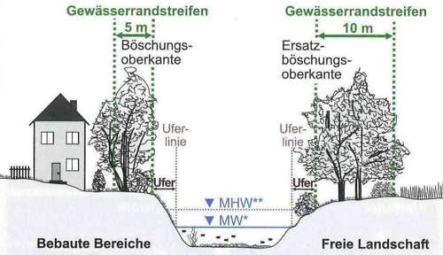 Der Grundstückeigentümer bzw. Nutzungsberechtige hat im Gewässerrandstreifen auch wichtige Pflichten. So ist dieser Bereich z.B. von Kompost, Brennholzstapeln und weiteren Ablagerungen oder Gegenständen freizuhalten, da diese den Wasserabfluss behindern oder im Hochwasserfall fortgeschwemmt werden können.