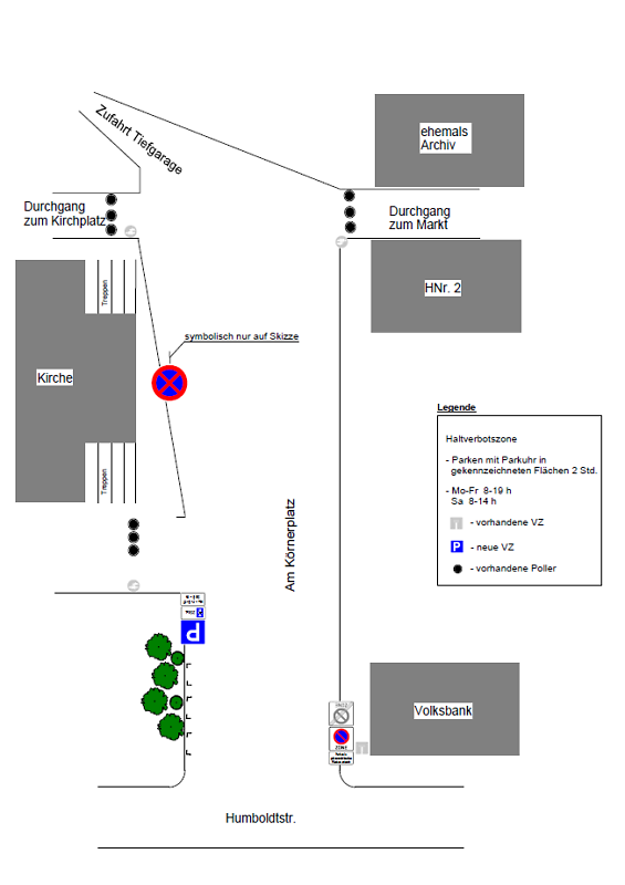 Ab Mai 2024 wird im Bereich „Am Körnerplatz“ die Parkordnung geändert. Mit der Aufstellung des Verkehrszeichens 290.01 (Beginn eines eingeschränkten Halteverbotes für eine Zone) ist das Parken "Am Körnerplatz", insbesondere vor der St.-Aegidien-Kirche verboten.