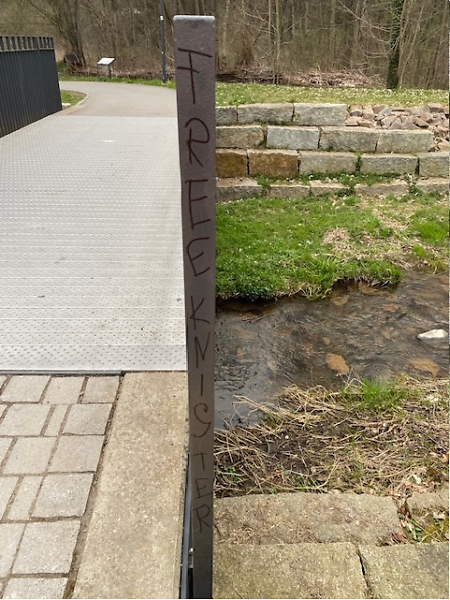 Über den Mängelmelder der Stadt wurden der Verwaltung heute Morgen Schmierereien im Mühlbachtal gemeldet. Diese erstrecken sich vom Stadtpark bis in den Treppenbereich in Richtung Freiberger Straße (Höhe Pflegeheim). Die Stadtverwaltung hat die Sachbeschädigungen bei der Polizei zur Anzeige gebracht. Die Schadenshöhe wird auf rund 1.500 Euro geschätzt. Die Reinigung der Schmierereien wird von unseren Mitarbeitern des städtischen Bauhofes durchgeführt.